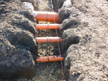 Před vylitím základových pásů betonem je ještě potřeba určit a vyznačit výšku do které základy vyplníte. Tudíž budete potřebovat záchytné body po celých základech, které vám pomohou určit, do jaké výšky můžete maximálně základy vyplnit. Přesná míra je určena mezi zednickým provázkem a vylitým betonem v základech. Výšku máte již propočítanou v 1. ETAPĚ|Zaměřovací a výkopové práce|Zaměření a vytyčení stavby do terénu. Má míra byla mínus 250 mm od provázku směrem do výkopu, jak je dobře vidět v téže kroku na stejném obrázku 26. Výpočet umístění první řady tvárnic. Obrázek zde ještě jednou publikuji.